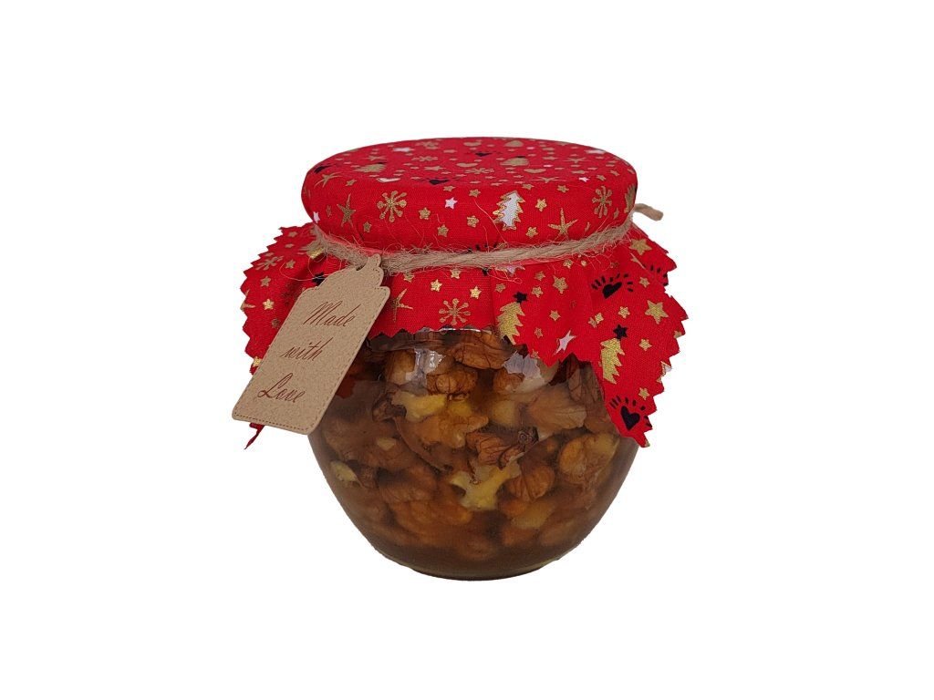 Spojení vlašských ořechů a akátového medu je dokonalým příkladem harmonie chutí a výživových hodnot. Ořechy jsou pečlivě vybírané, ručně loupané a poté zalité jemným akátovým medem, čímž se stávají nejen chutnou pochoutkou, ale i skvělým zdrojem zdravých tuků, bílkovin a antioxidantů. Ideální jako zdravý snack, do jogurtu, ovesné kaše nebo na pečivo. Vhodné pro všechny milovníky přírodních a výživných dobrot.